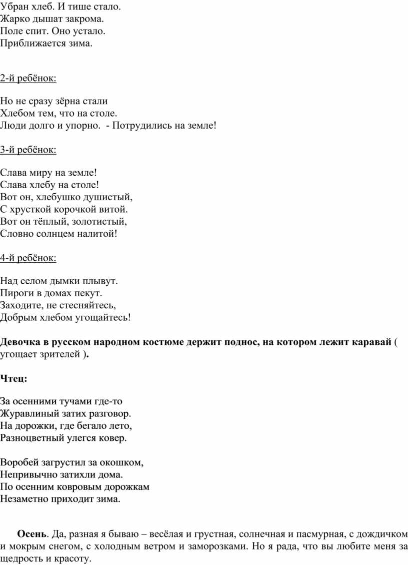 Хлеб – наше главное богатство. Поэтому уборка урожая хлеба – самая главная.