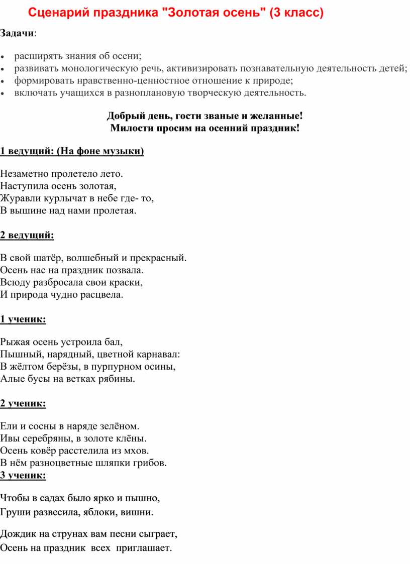 Сценарий праздника "Золотая осень" (3 класс)