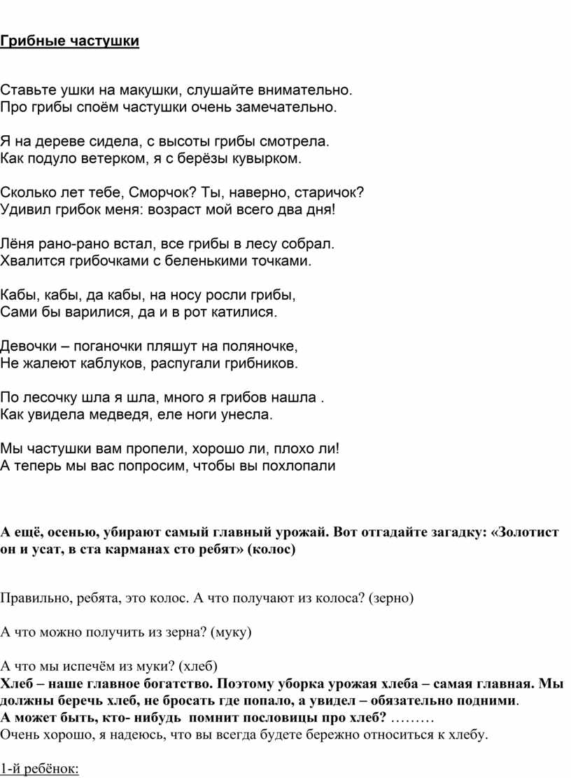 Про грибы споём частушки очень замечательно.