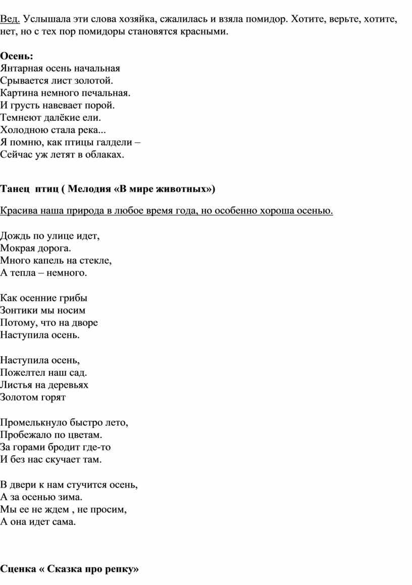 Дети исполняют песню «Осень»