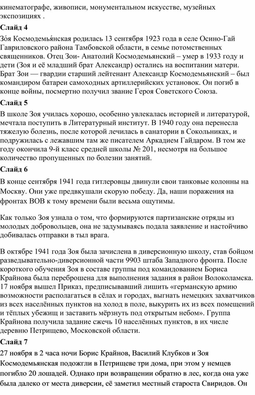 Внеклассное мероприятие «Зоя Космодемьянская.