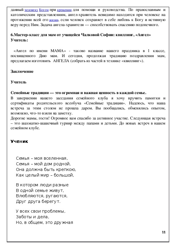 «Ангел по имени МАМА» таково название нашего праздника в 1 классе,