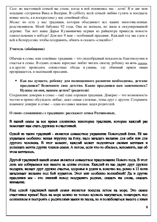 14.Разговор о семейных традициях (семьи Бойковы, Ратниковы,