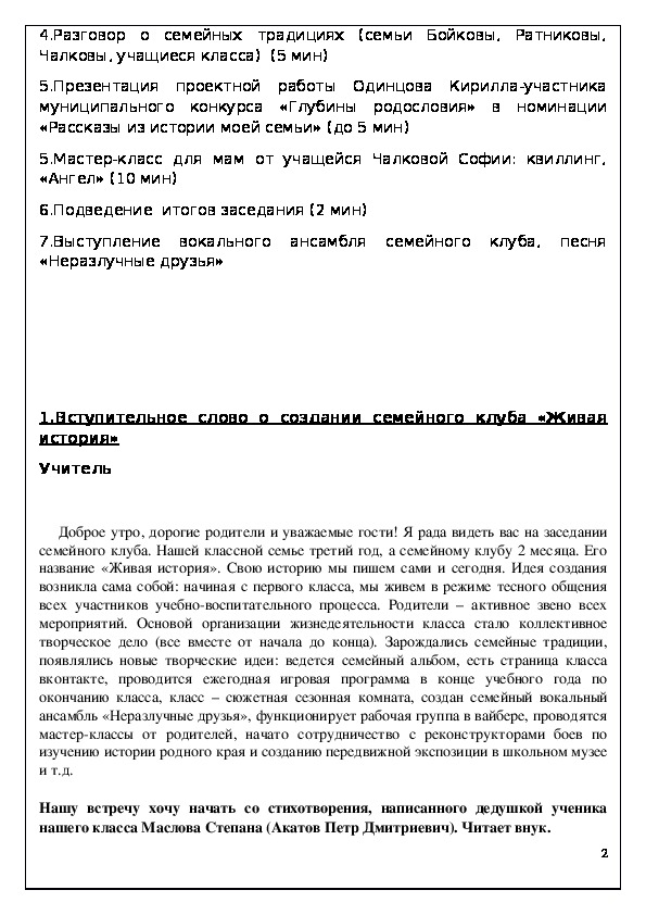 Заседание семейного клуба 3 «В» класса «Живая история»