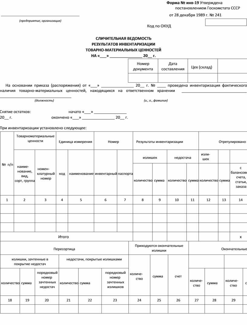 Форма № инв-19 Утверждена