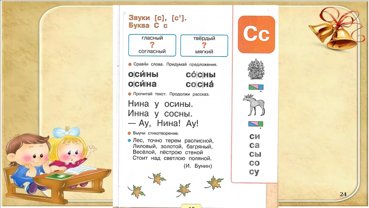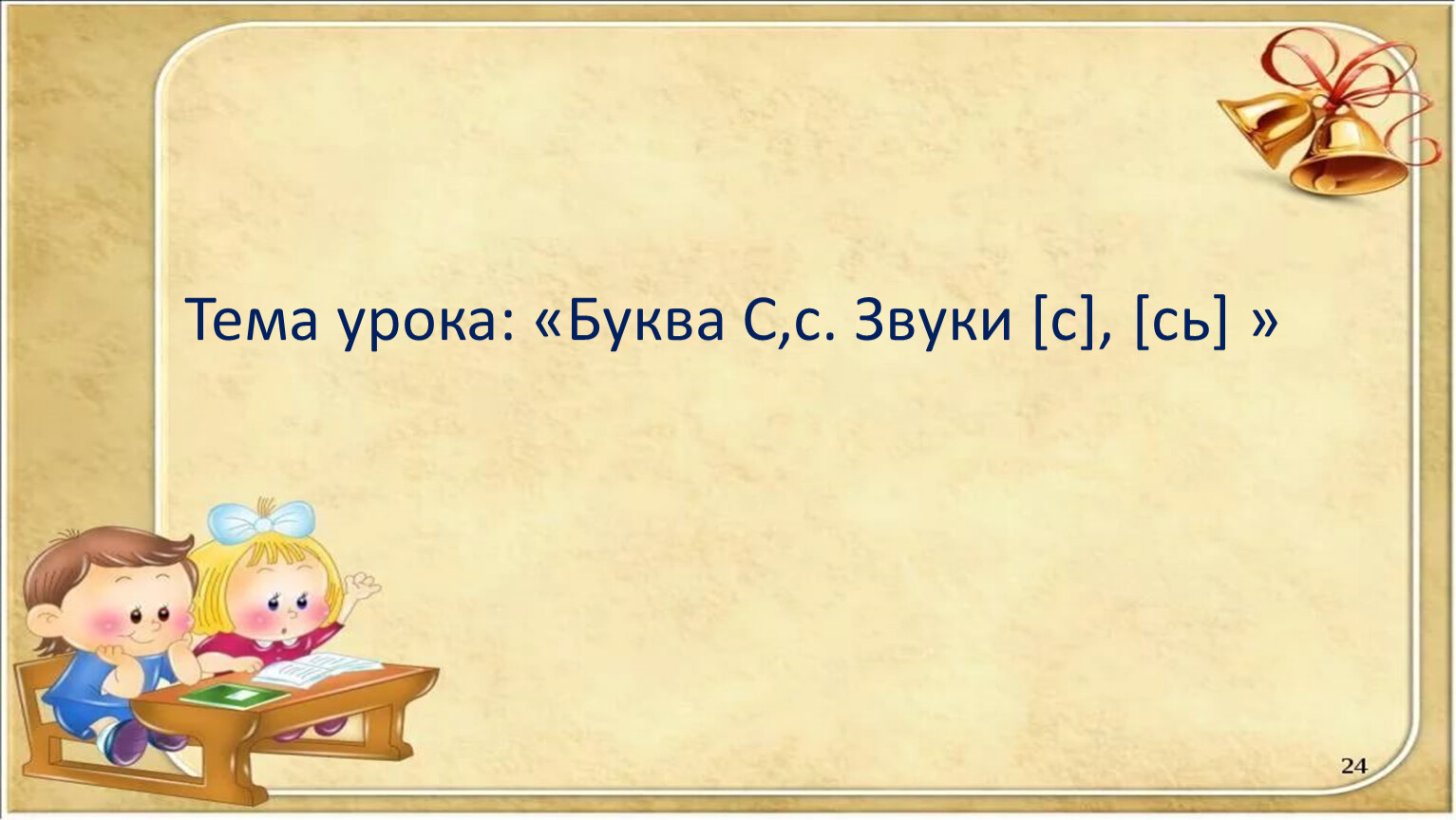 Тема урока: «Буква С,с. Звуки [с], [сь] »