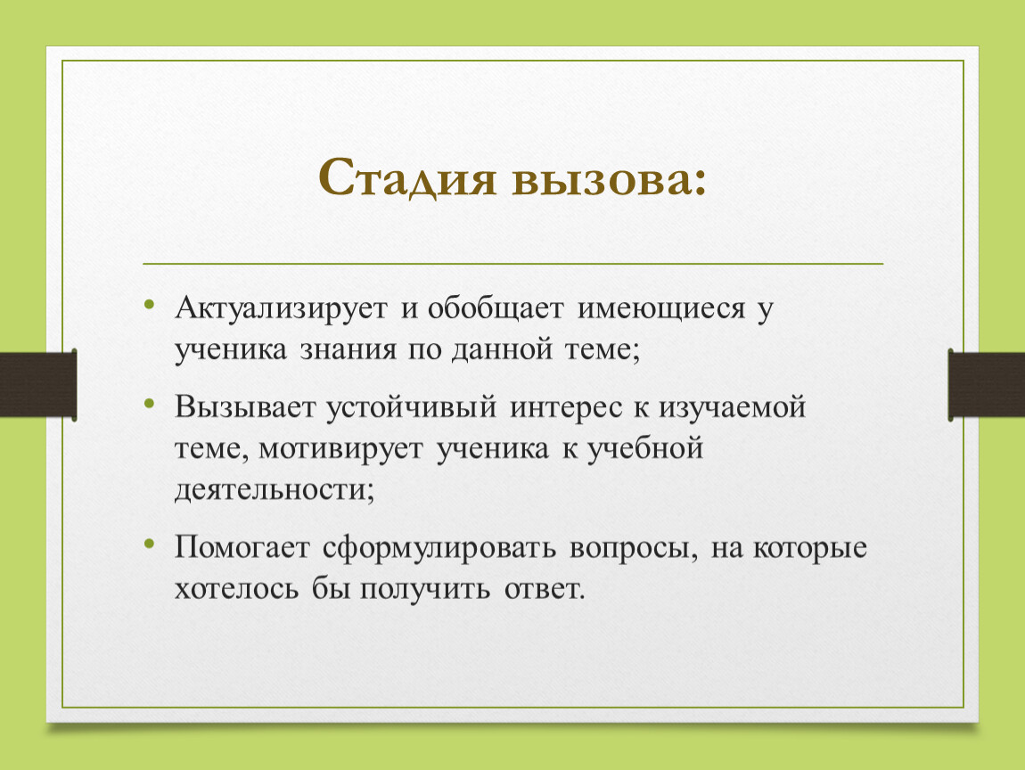 Стадия вызова: