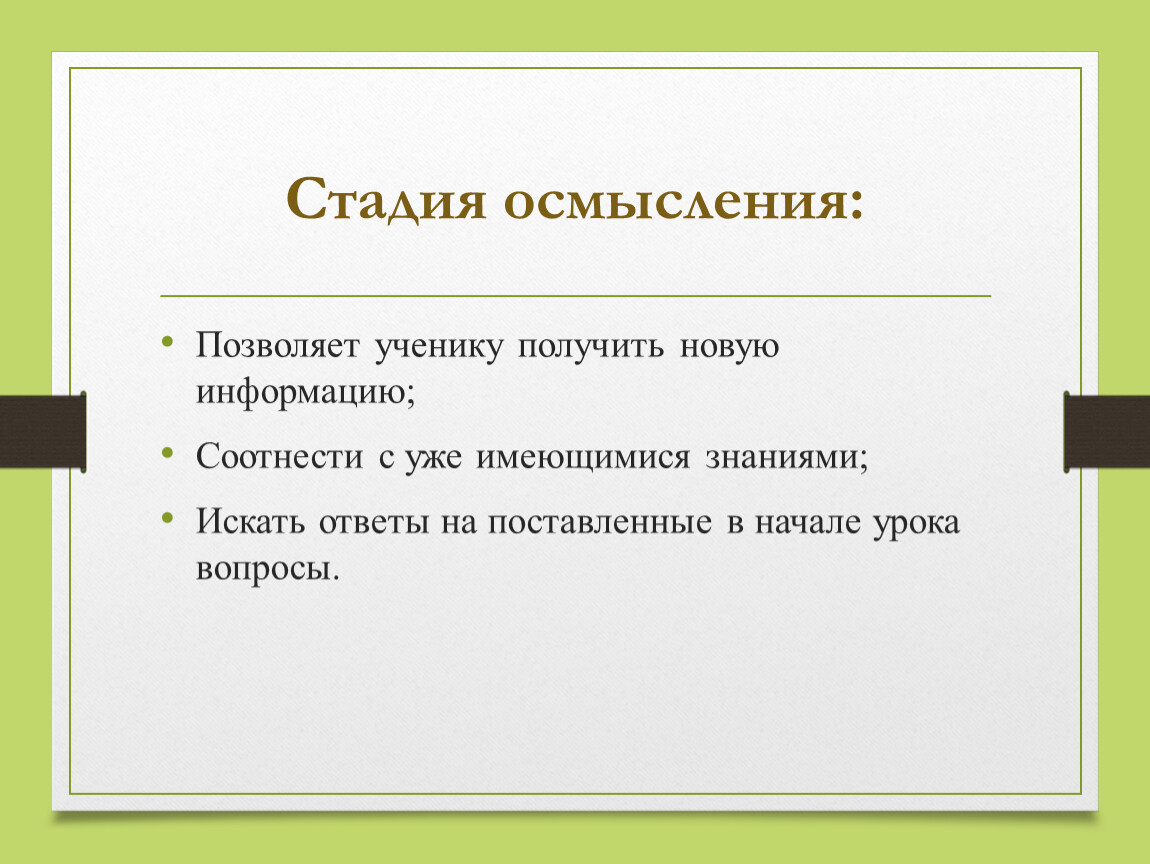 Стадия осмысления:
