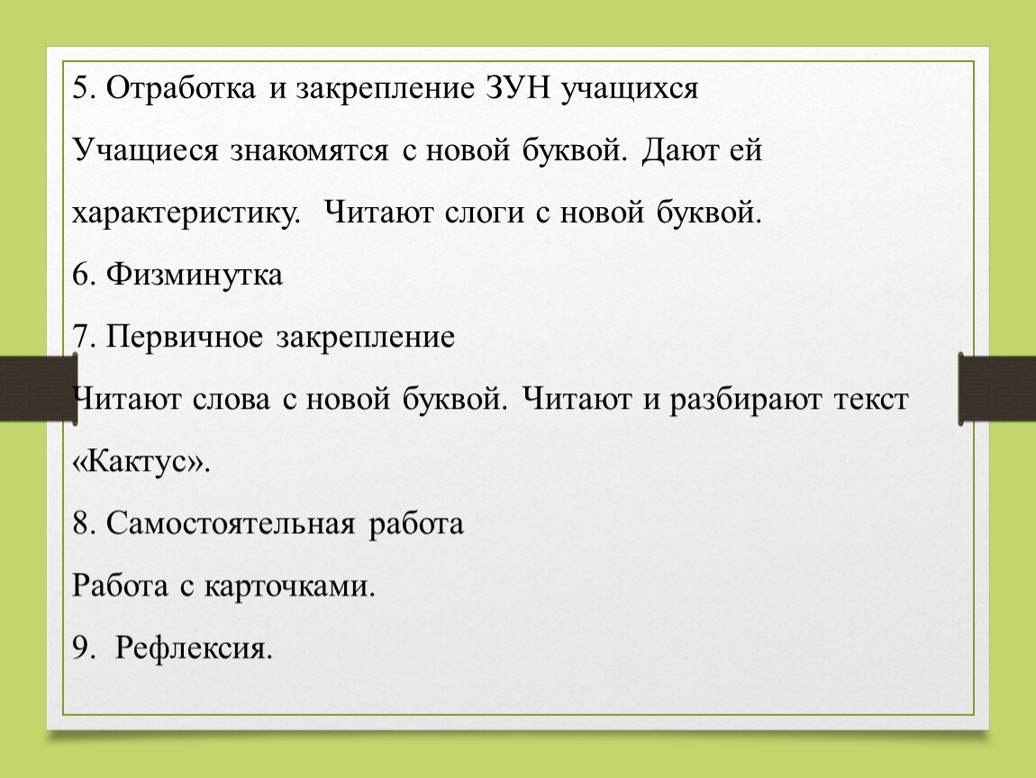 5. Отработка и закрепление ЗУН учащихся