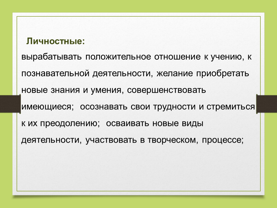 Формирование собственного отношения к изучаемому материалу.