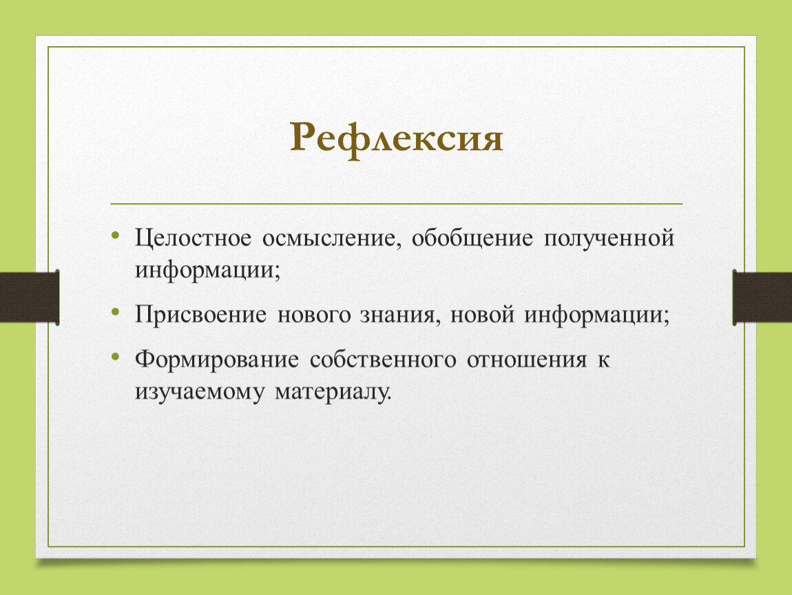 Целостное осмысление, обобщение полученной информации;