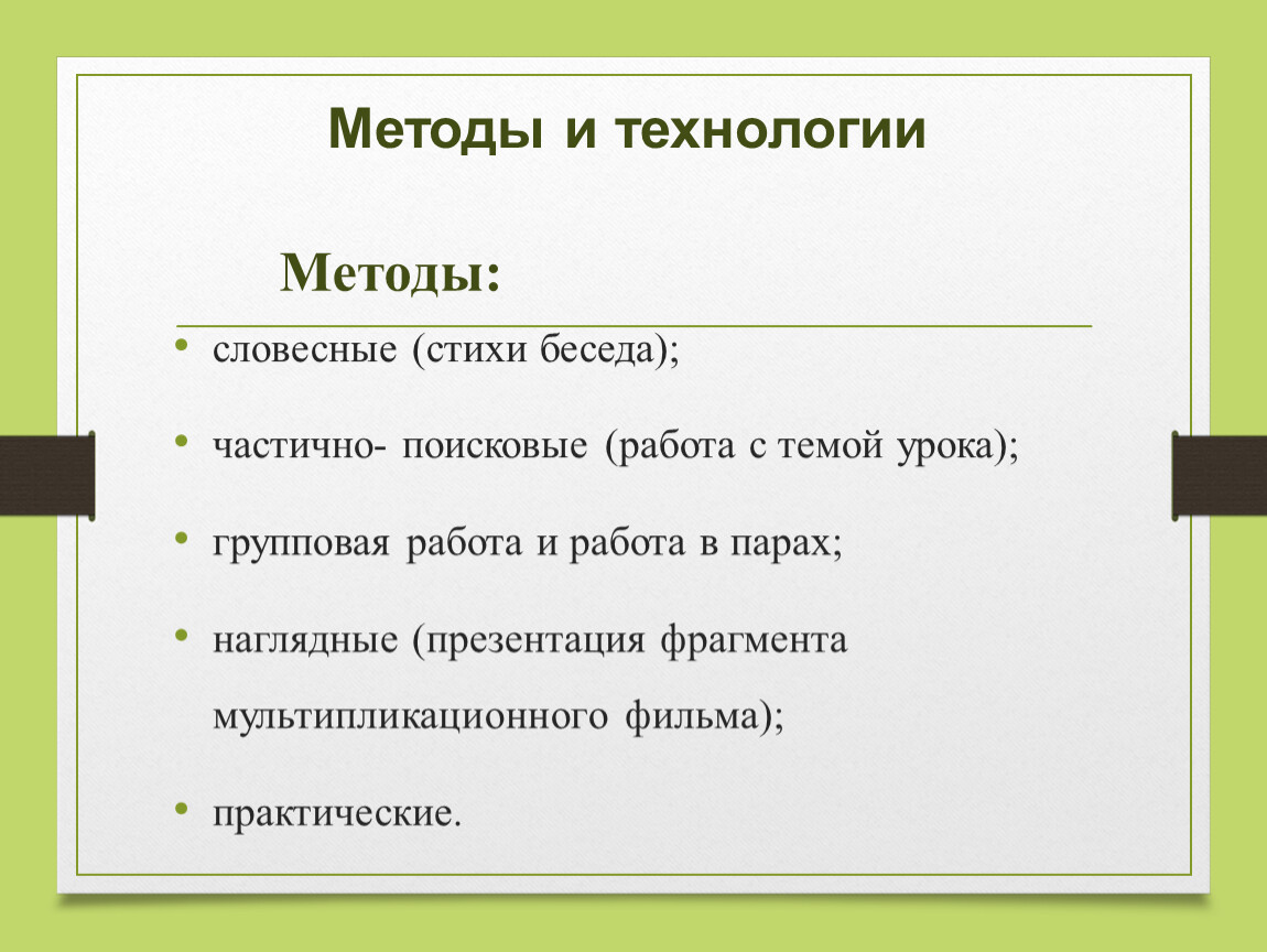 наглядные (презентация фрагмента мультипликационного фильма);
