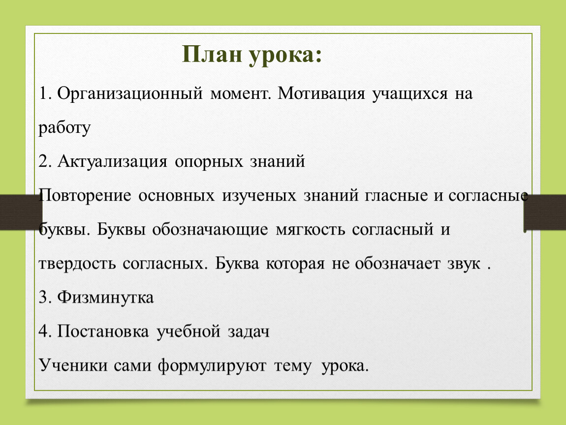 Урок: обучение грамоте