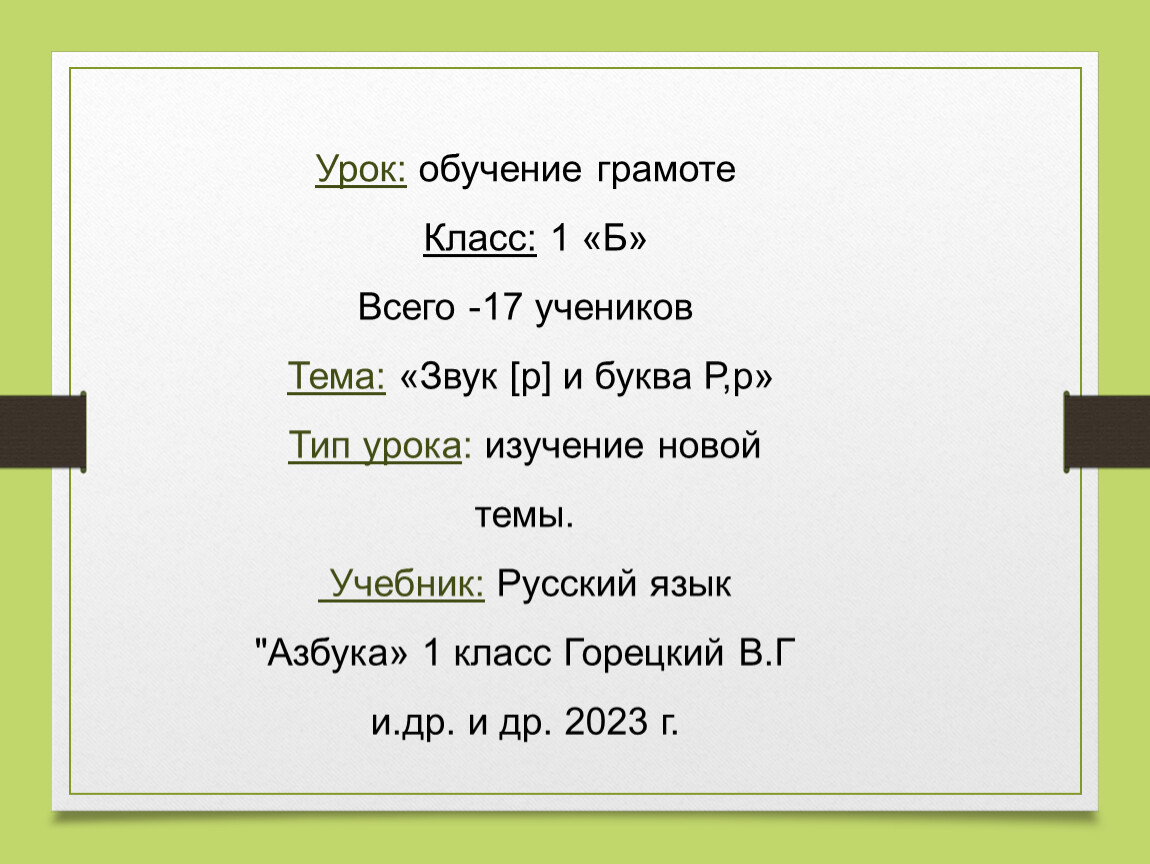 Тема: «Звук [р] и буква Р,р»