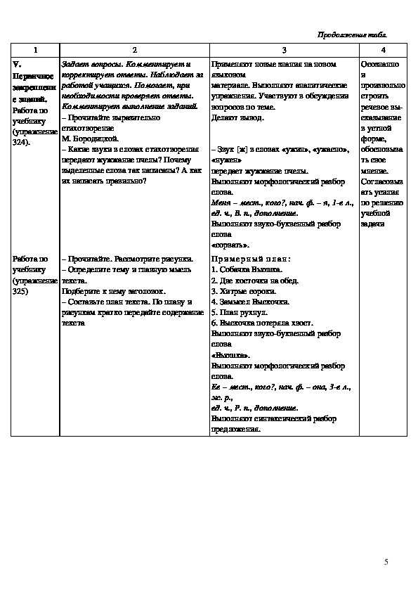 тему и главную мысль текста; составлять план текста; выполнять синтаксический разбор предложения; списывать, вставляя пропущенные орфограммы