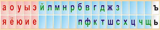 На протяжении всего периода обучения грамоте - схема (лента) букв полностью открыта. Постоянное обращение в ней - это тоже своего рода подготовка к новому материалу. Например: узнали букву Т, что эта согласная, глухая. Тут же образуем пару Т - Д, а затем читаем все парные согласные вместе. Так поддерживается интерес к учебе читающих детей и одновременно дается возможность подтягиваться другой группе учащихся.