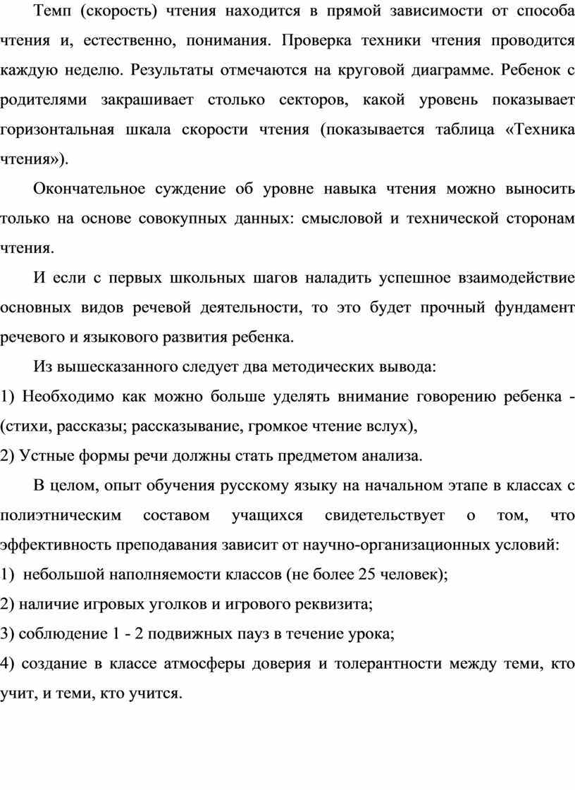 В целом, опыт обучения русскому языку на начальном этапе в классах с полиэтническим составом учащихся свидетельствует о том, что эффективность преподавания зависит от научно-организационных условий: