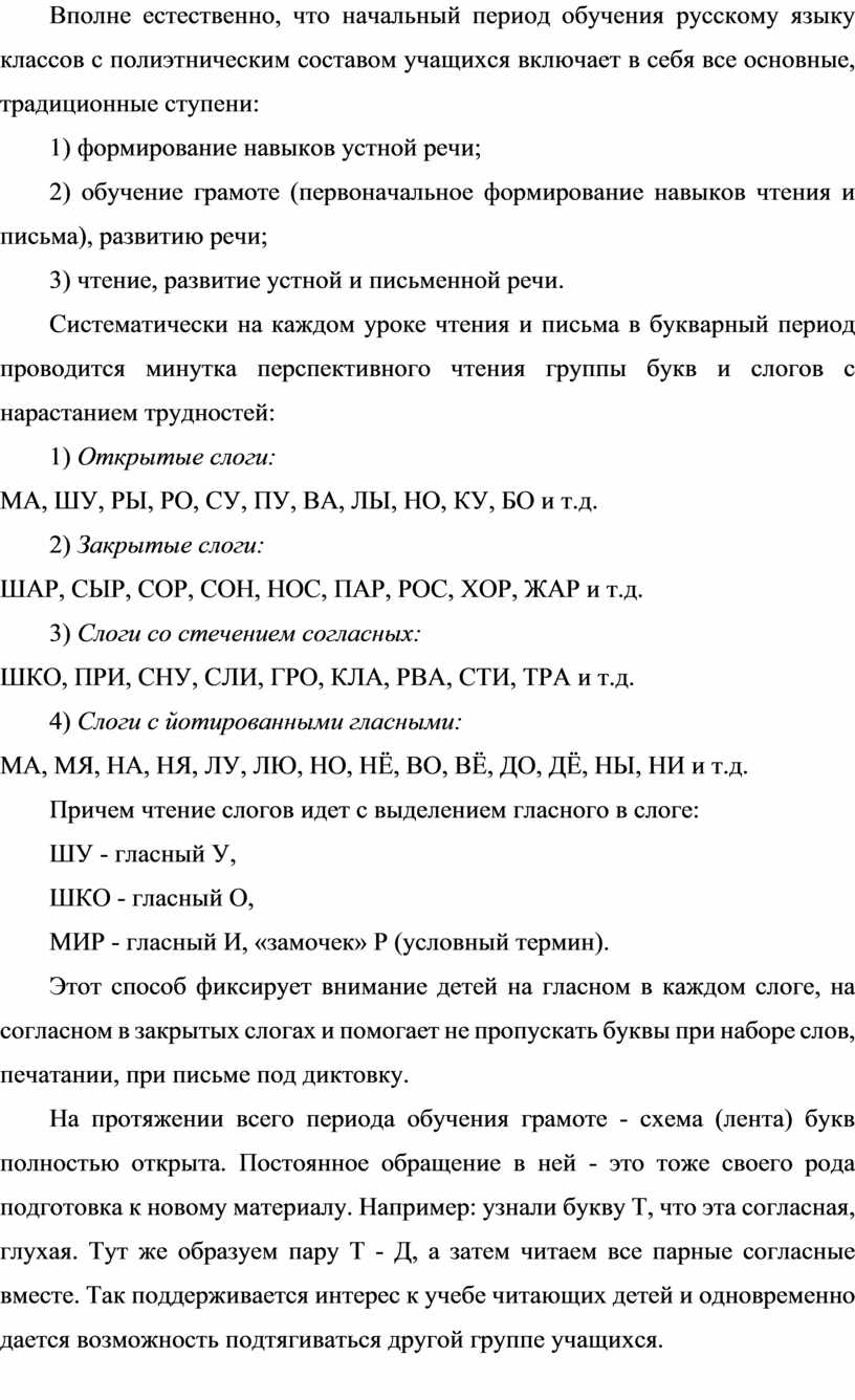 Вполне естественно, что начальный период обучения русскому языку классов с полиэтническим составом учащихся включает в себя все основные, традиционные ступени:
