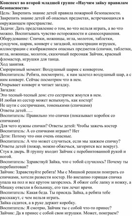 Обложка для материала Конспект занятия "Научим зайку правилам безопасности"