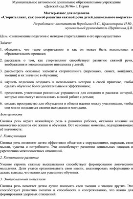 Обложка для материала Мастер-класс для педагогов «Сторителлинг, как способ развития связной речи детей дошкольного возраста»