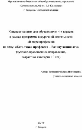 Конспект занятия в рамках программы внеурочной деятельности "В мире профессий"; 4 класс