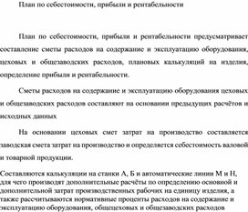 Обложка для материала План по себестоимости, прибыли и рентабельности