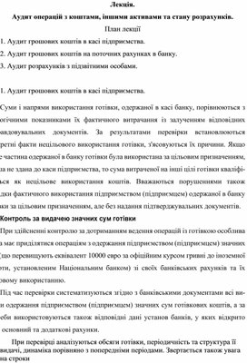 Обложка для материала Лекція. Аудит операцій з коштами, іншими активами та стану розрахунків.