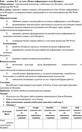 Обложка для материала Практическая работа по теме Поиск информации в сети Интернет