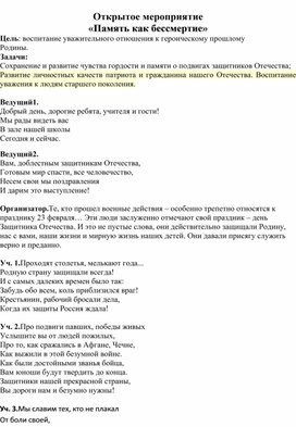 Обложка для материала Открытое мероприятие «Память как бессмертие»