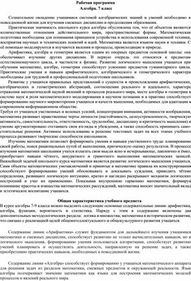 Обложка для материала РАБОЧАЯ ПРОГРАММА 8 класс алгебра
