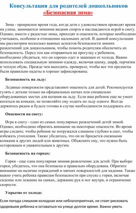 Обложка для материала Консультация для родителей "Безопасная зима"