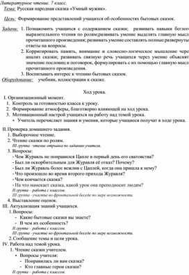 Конспект урока по литературному чтению в 7 классе. Тема: "Русская народная сказка «Умный мужик»