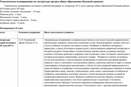 Тематическое планирование "Литература" базовый уровень (среднее общее образование)
