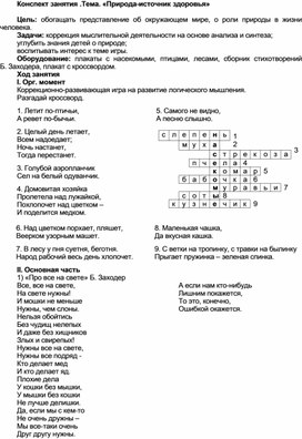 Обложка для материала Конспект занятия  «Природа-источник здоровья»