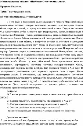 Обложка для материала Метапредметное задание по биологии 9 касс. Тема"Теплорегуляция кожи"