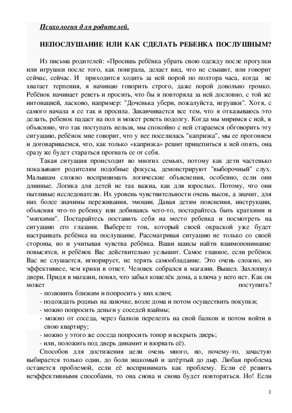 Консультация для родителей - Непослушание или как сделать ребенка послушным?
