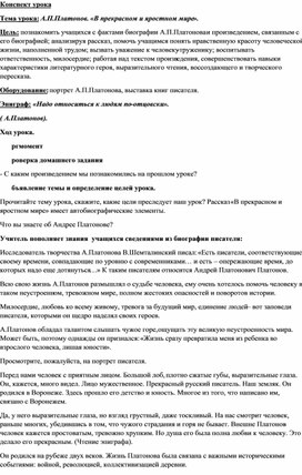 Конспект урока А.П.Платонов «В прекрасном и яростном мире»