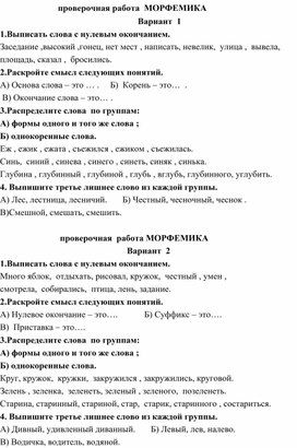 Проверочная работа "Приставки и суффиксы", русский язык, 3 класс, Рамзаева