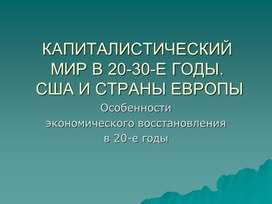 Презентация по курсу всеобщей истории: «КАПИТАЛИСТИЧЕСКИЙ МИР В 20-30-Е ГОДЫ. США И СТРАНЫ ЕВРОПЫ» (проф.-техническое образование)